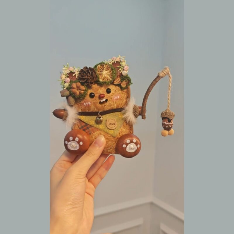 Pod Baby a Bocca Aperta – Cucciolo che Pesca Ghiande è una bambola d'arte da...